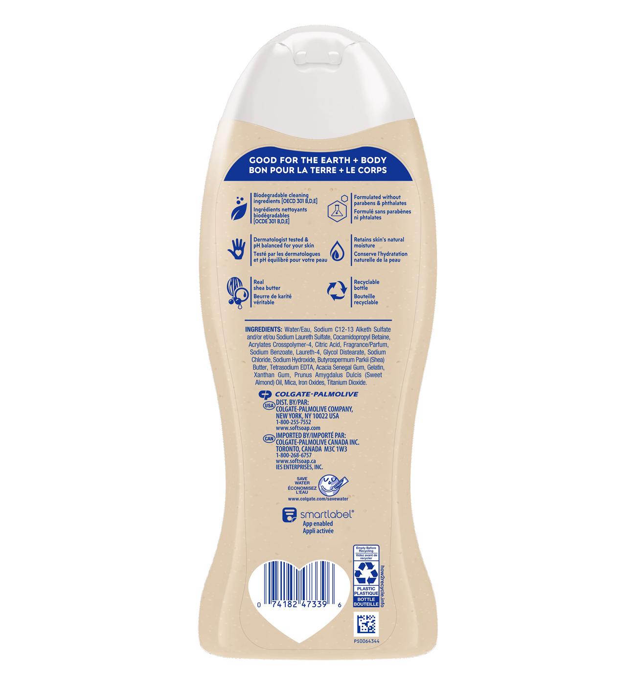 Softsoap Body Buttery Shea & Almond Oil Body Wash, 20 Oz. Softsoap Body Buttery Shea & Almond Oil Body Wash gives you a delightfully moisturizing yet effective clean. This body wash has real shea butter for silky and soft feeling skin. This creamy body wash retains skin’s moisture and is dermatologist tested and pH balanced for your skin. Feel the joy of clean with Softsoap Body! New Look, Same Great Clean Softsoap labels may have a fresh look, but they still deliver the same great clean and same great scents. Confidently wash with Softsoap Body while enjoying fragrant scents and fun labels that will bring you joy. For everyone, every mood, and every shower, Softsoap Body is designed to make you joyfully clean. Softsoap Body Buttery Shea & Almond Oil Body Wash is the perfect way to add a moment of joy to your life. Feel Good About Your Body Wash This body wash formula retains skin’s natural moisture and is made with biodegradable cleaning ingredients. Plus, this body wash is formulated without parabens and phthalates, so you can feel good about your body wash. Feel the Joy of Clean At Softsoap, we believe that the little moments throughout your day should be fun! With delightful bubbles and surprisingly fragrant scents, every trip to the sink and every shower leaves you feeling uplifted. Enjoy those small moments of joy and get brilliantly clean with Softsoap liquid hand soaps and body washes—now, you’re ready to take on the world!