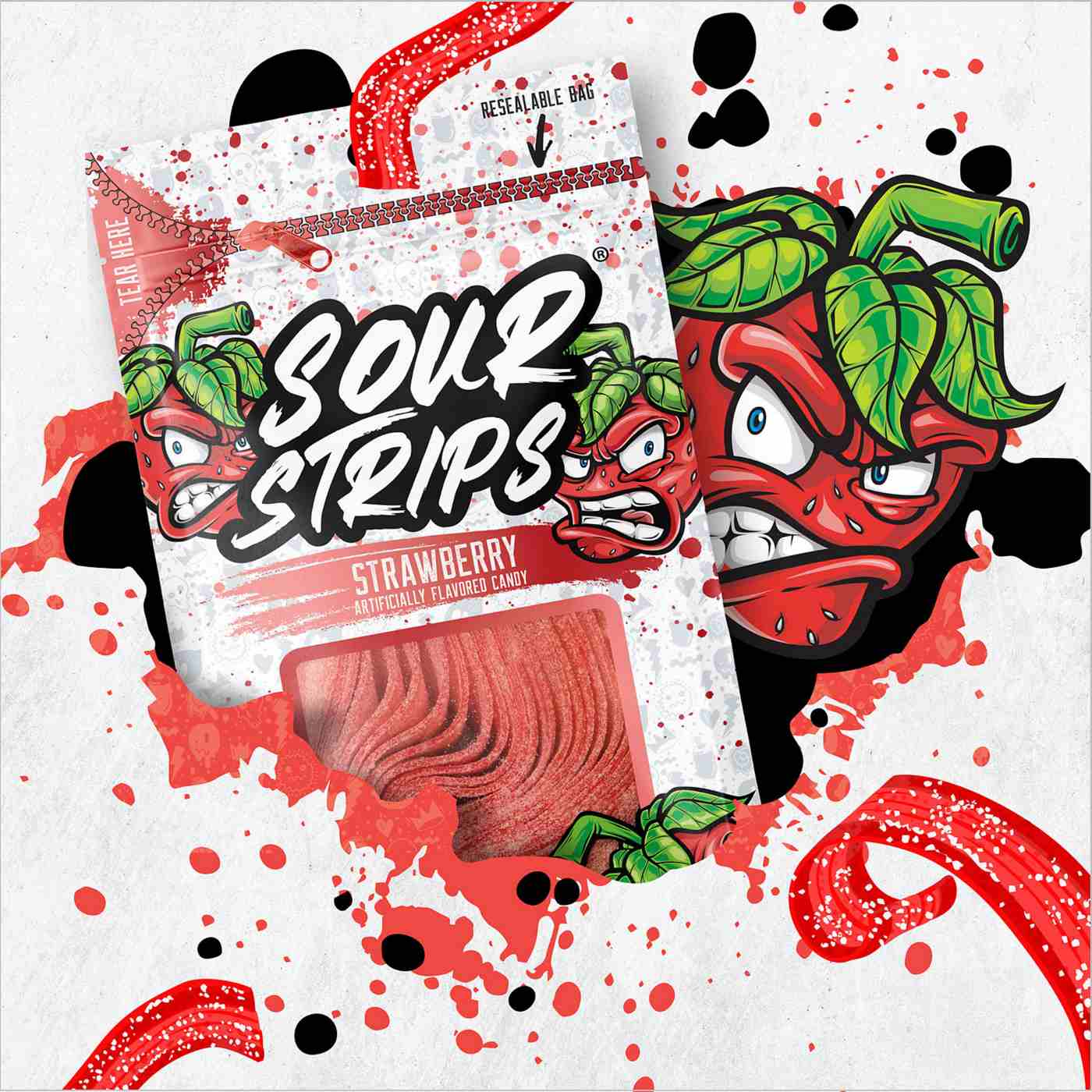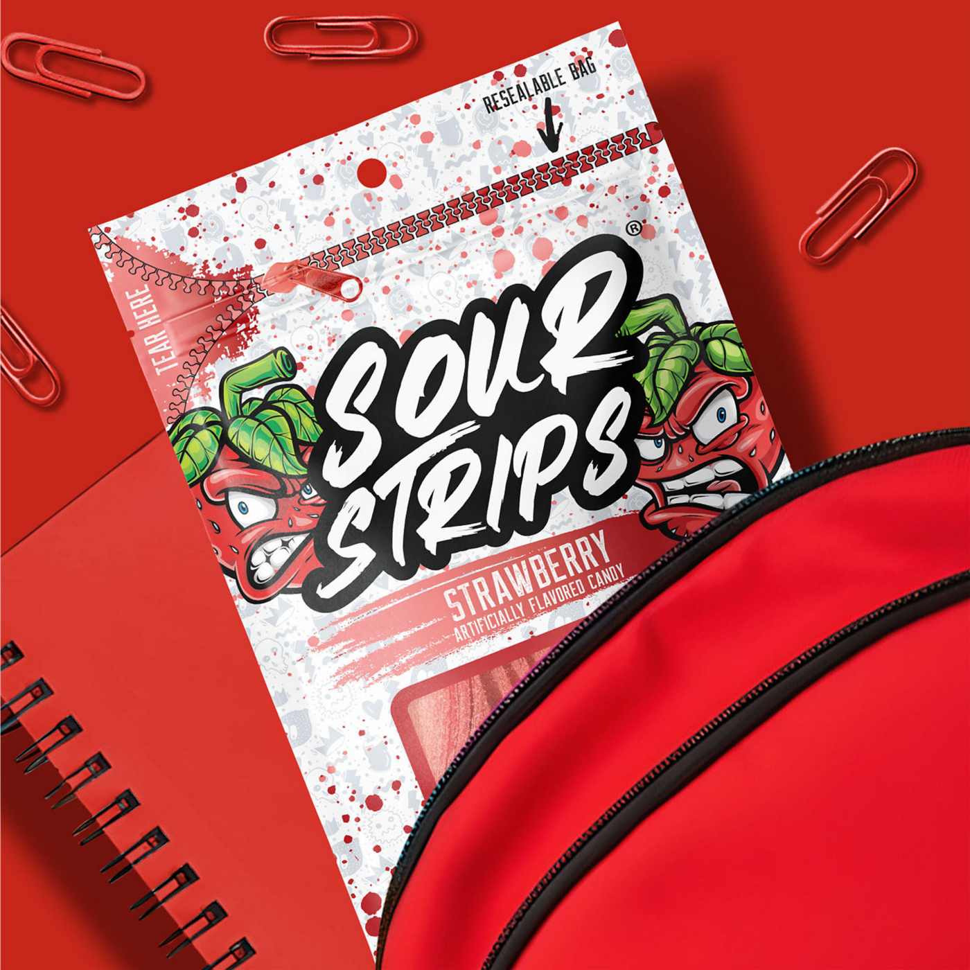 Looking for an exciting treat that provides a kick to your regular snack routine? Sour Strips strawberry flavored chewy candies are perfect for all your adventures. Packaged in a resealable bag for lasting freshness, you can enjoy them at work, school or on the go. Bring a bag to your next movie marathon, sporting event or road trip. Pour these sour candies into a covered candy dish, pack them in lunch boxes or have a bag ready for any moment in between. No matter how you choose to enjoy Sour Strips chewy candy, it is sure to be a delicious success!