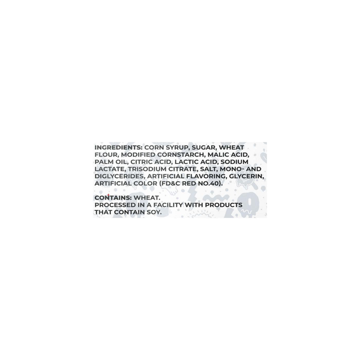 Corn Syrup, Sugar, Wheat Flour, Modified Cornstarch, Malic Acid, Palm Oil, Citric Acid, Lactic Acid, Sodium Lactate, Trisodium Citrate, Salt, Mono- and Diglycerides, Artificial Flavoring, Glycerin, Artificial Color (FD&C Red No. 40).Allergens and safety warnings