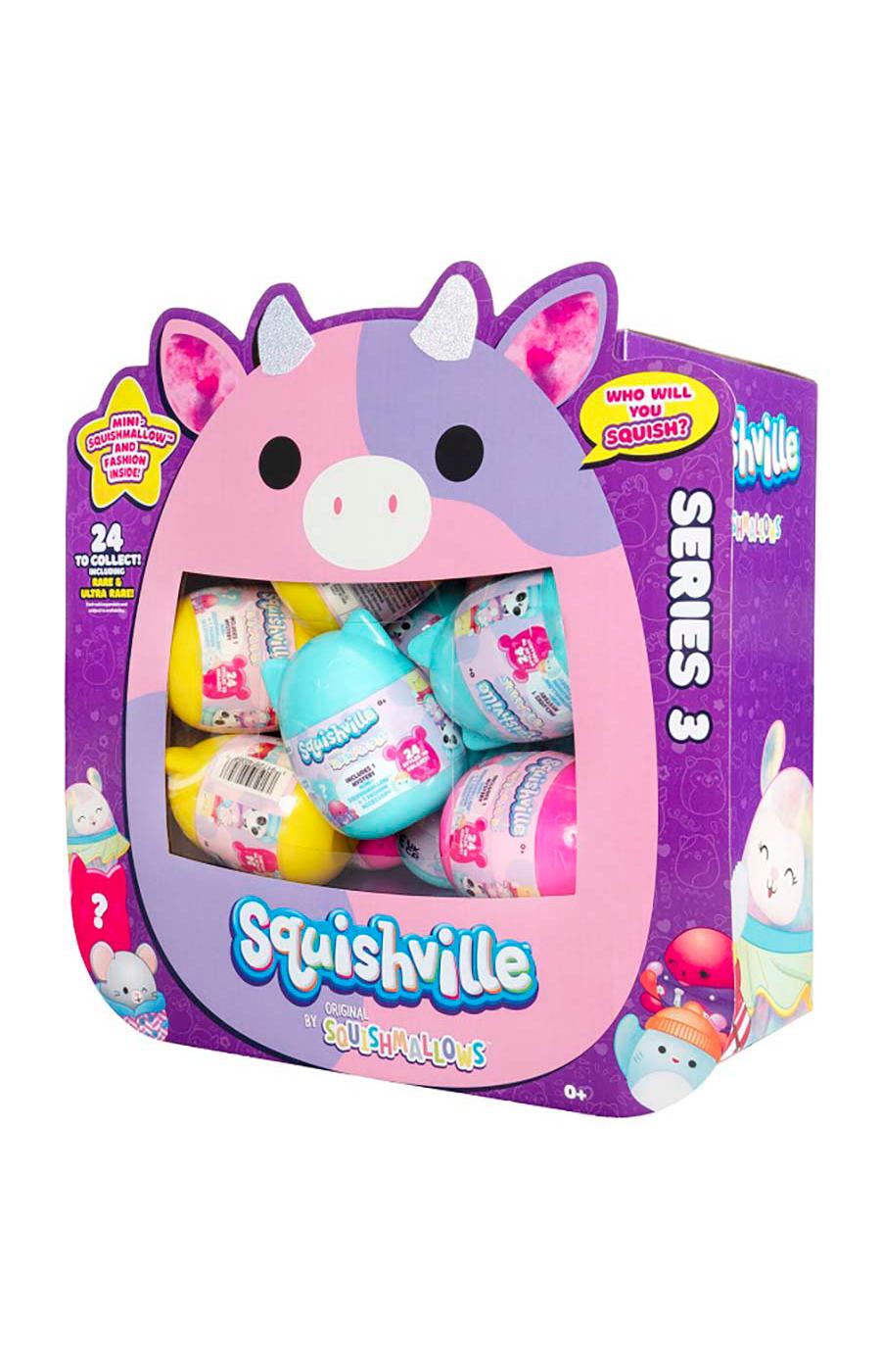 ● Get hooked on the Squish - These cute plush are made with high-quality, irresistibly soft material ● Squishmallows plush are available in an all-new miniature 2-inch size ● Each Mini-Squishmallow plush toy comes with an adorable fashion accessory ● 24 irresistibly cute Mini-Squishmallows plush toys to collect
