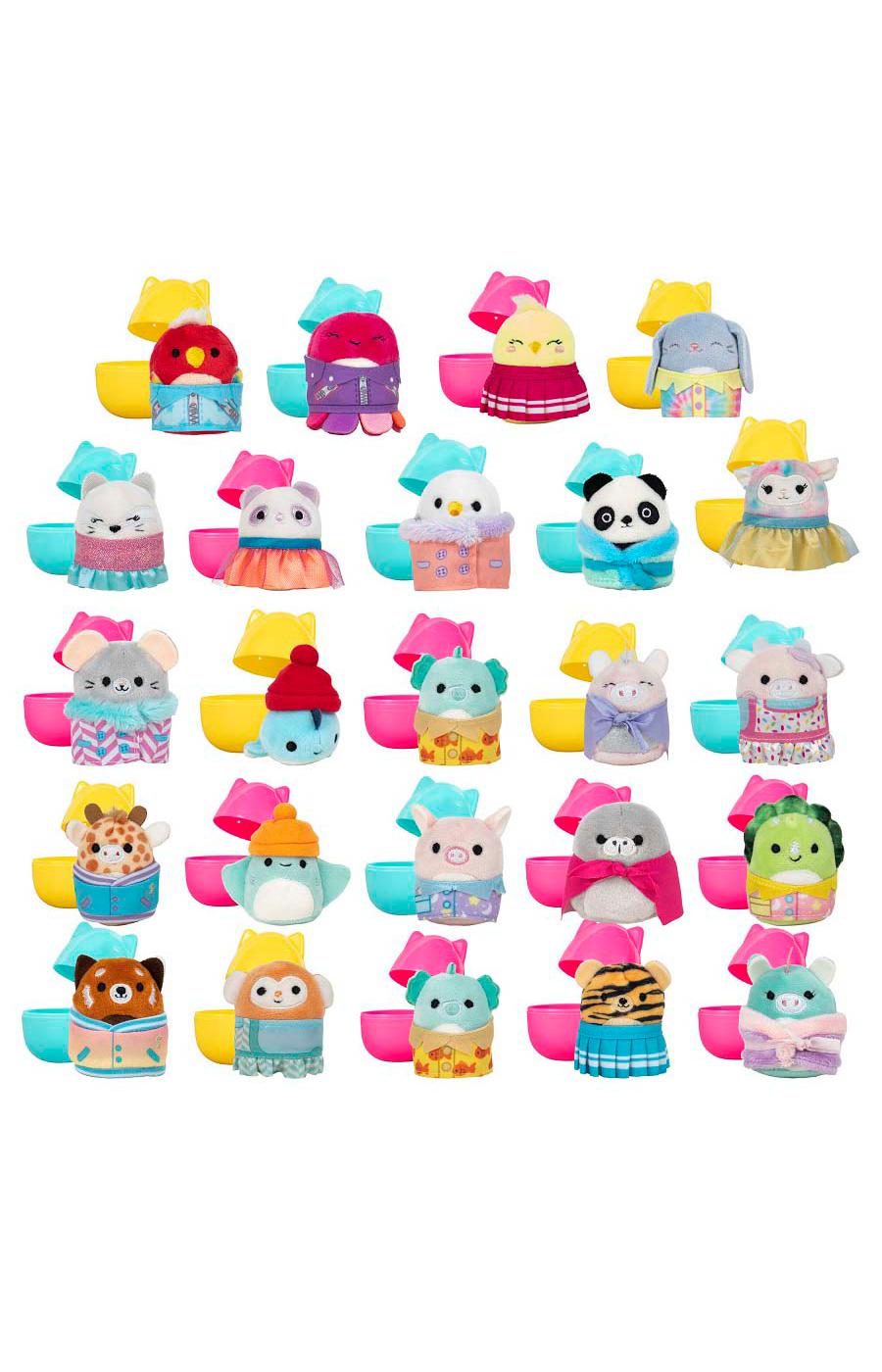 There are 24 Squishmallow plush favorites like Sharie Sloth, Cali Caticorn, and Pandora Pegasus to your world of squish in their new 2-inch size. Who will you squish!