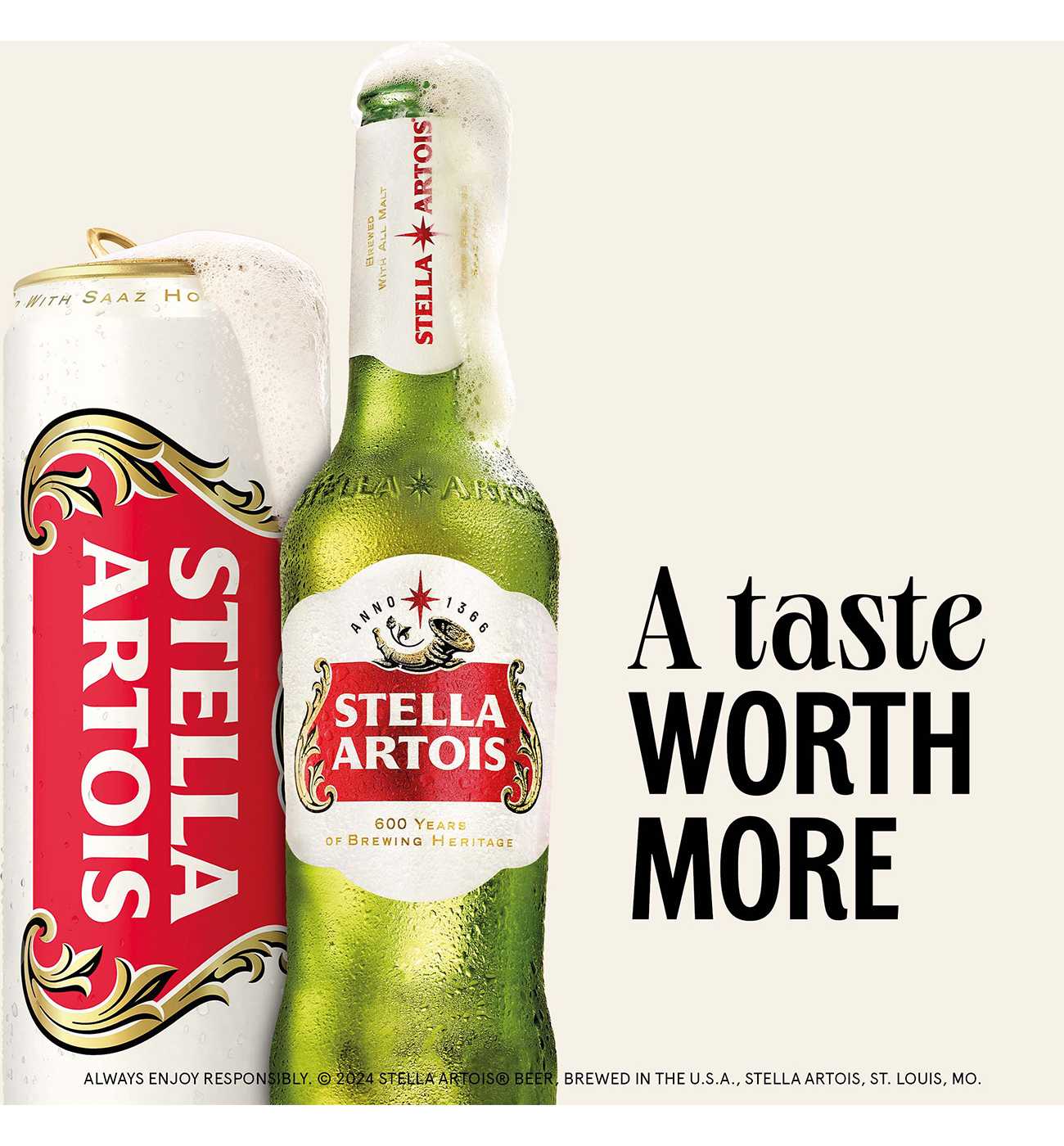 Take home the Gold with Stella Artois, a Proud Sponsor of the FIFA World Cup 26™, a premium beer that honors a rich heritage spanning over 600 years. Crafted in true Belgian style, Stella Artois is a masterpiece of brewing expertise. With its distinctive golden hue and crisp, clean taste, this Belgian-style beer offers a delightful balance of malt sweetness and hop bitterness. Whether you’re hosting a watch party or celebrating after your favorite team’s win, Stella Artois is the perfect companion. Its smooth, refreshing flavor pairs well with a variety of dishes, from steak and seafood to wings. Take home the gold and toast to a Taste Worth More. Belgian-style Lager. 5.0% Alcohol by Volume.
