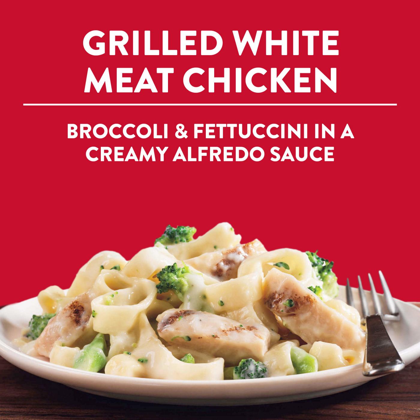 • DELICIOUS BITES FOR SOLO NIGHTS: You’ll love every bite of Stouffer’s Single Serve Chicken Fettuccine Alfredo that’s made with grilled white meat chicken and broccoli in a creamy alfredo sauce.