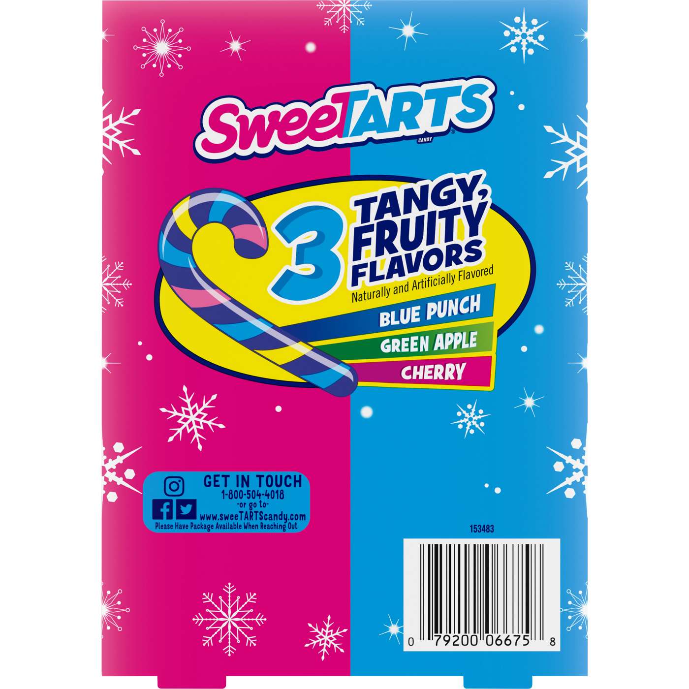 SweeTARTS Candy brings you the fruity punch flavor you need for all your holiday celebrations. These tri-colored candy canes come in three fun flavors: Blue Punch, Green Apple, and Cherry. Add a few of these delicious tangy holiday candy canes to your Christmas tree for festive candy cane Christmas decor, use them in a gift basket, add decor to your gingerbread house, or add them to your holiday centerpiece as edible candy cane decorations. Each piece is individually wrapped and works nicely as a Holiday stocking stuffer candy or as a tasty addition to that wrapped gift. Bring in the season with SweetTARTS Holiday Candy Canes.
