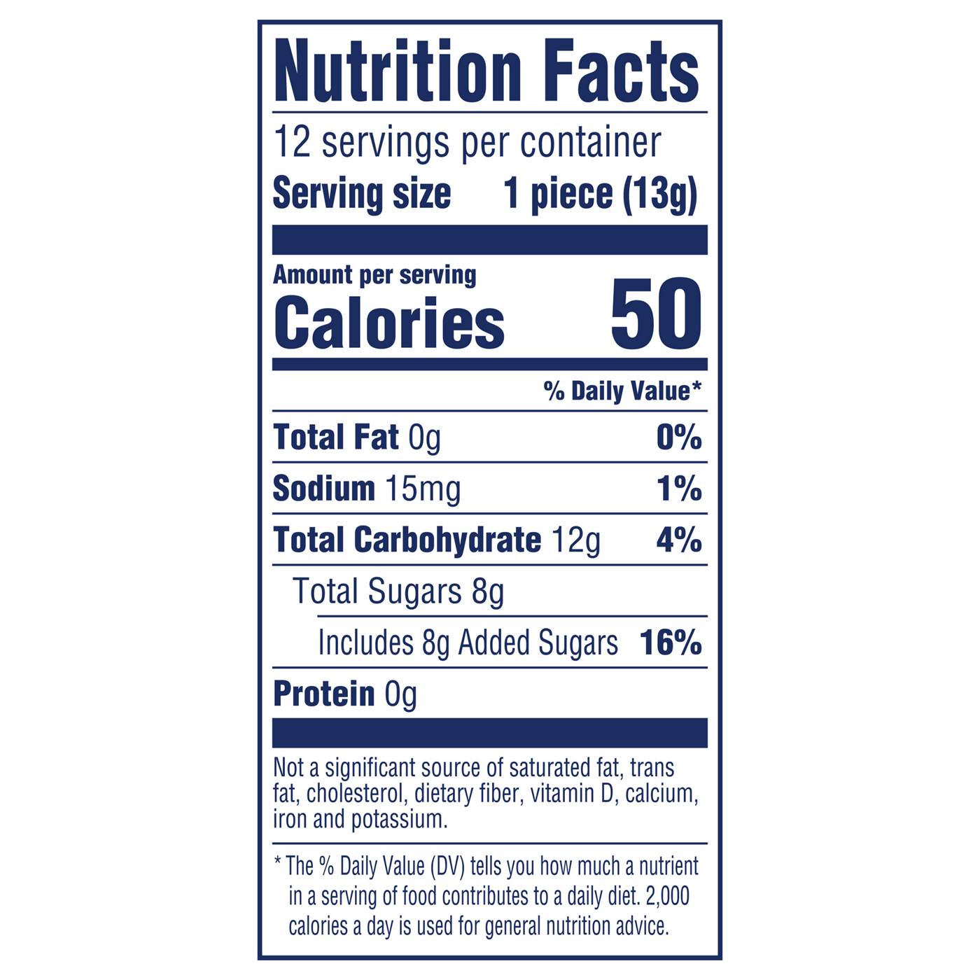 Serving Size1.00 Piece- Amount Per ServingCalories50
