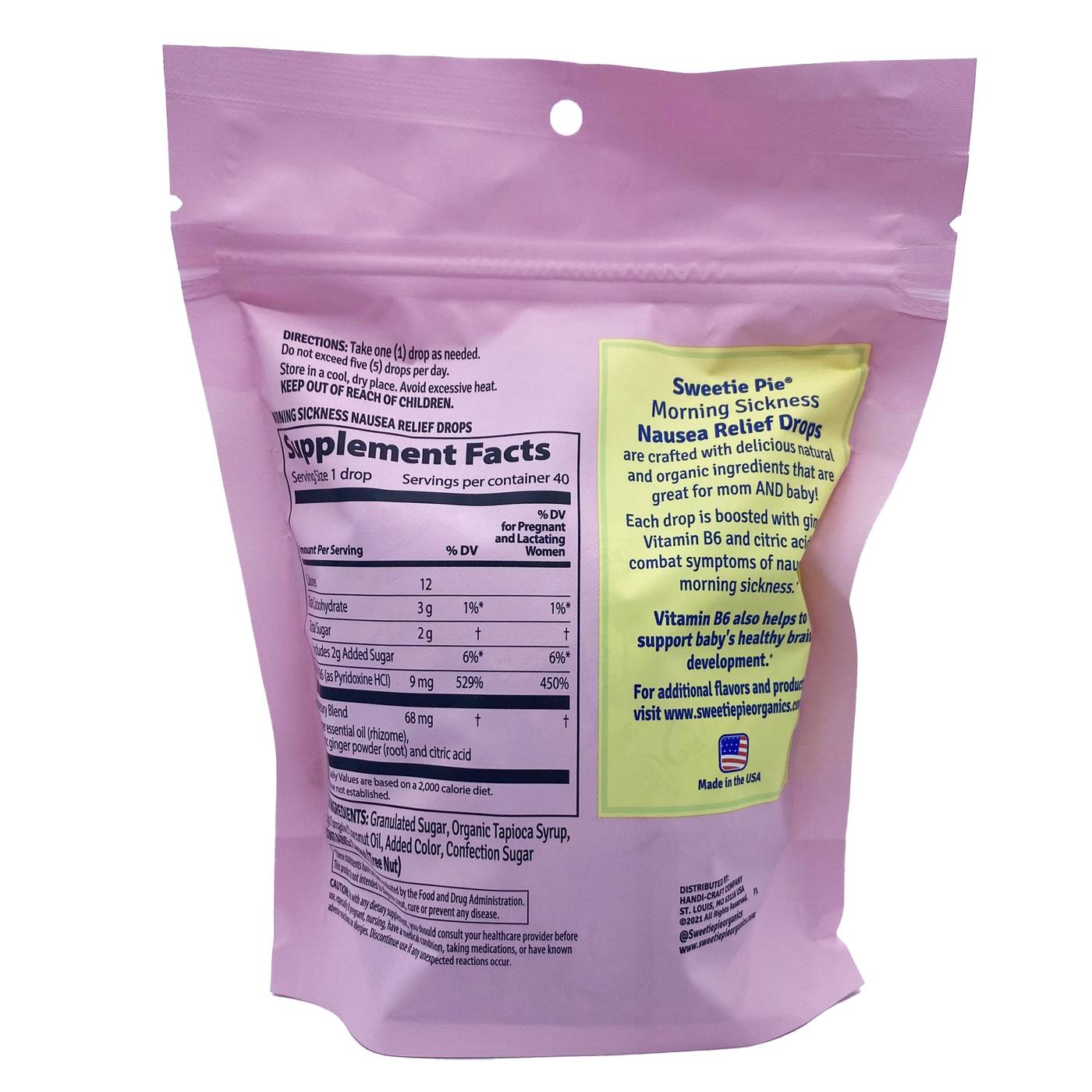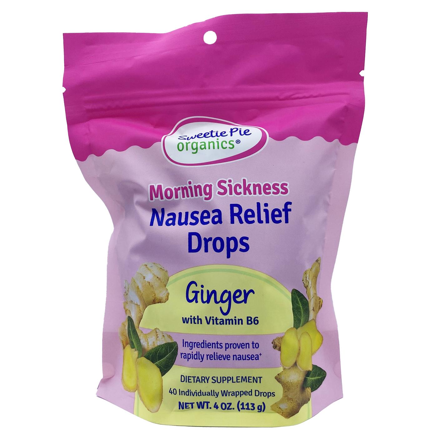 Quick and easy queasy relief! Sweetie Pie Organics Nausea Relief Drops soothe symptoms of morning sickness naturally. No artificial flavors or colors - crafted with delicious real, organic ingredients and boosted with vitamin B6, ginger and citric acid – all known to soothe symptoms of nausea or upset stomach.