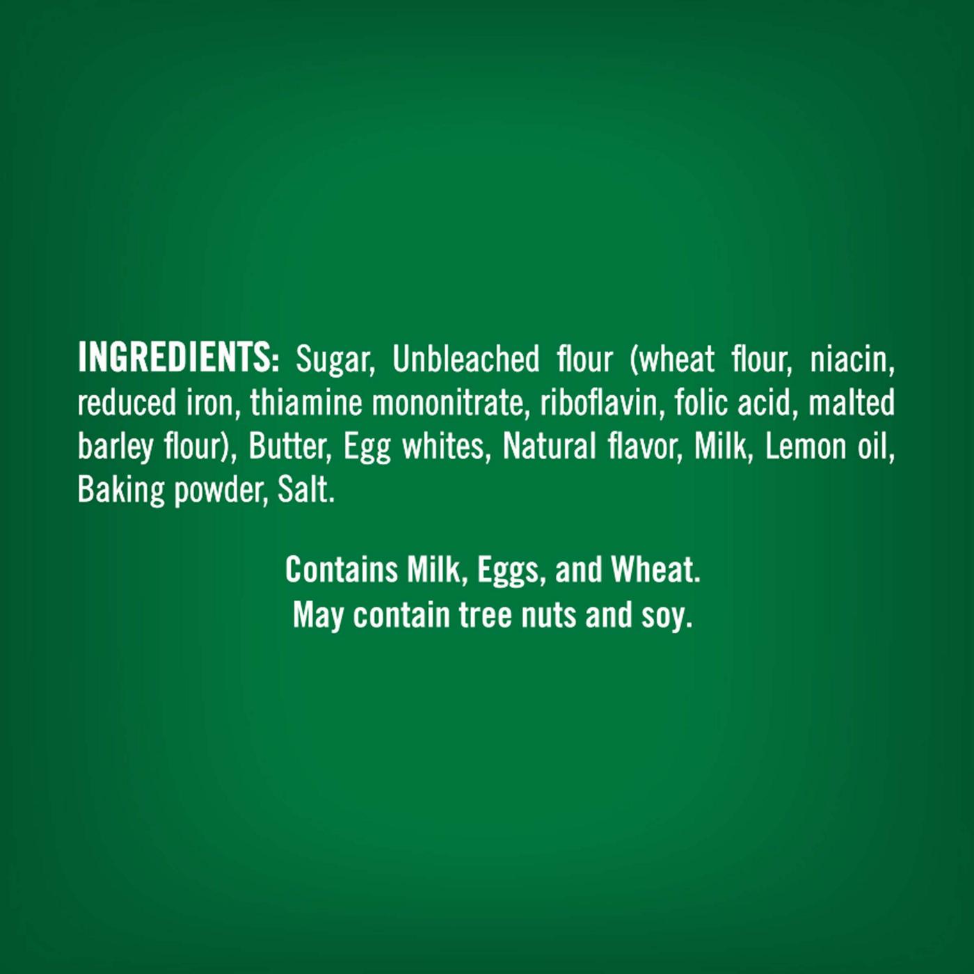 Sugar, Unbleached Flour (Wheat Flour, Niacin, Reduced Iron, Thiamine Mononitrate, Riboflavin, Folic Acid, Malted Barley Flour), Butter, Egg Whites, Natural Flavor, Milk, Lemon Oil, Baking Powder, Salt. Contains Milk, Eggs, And Wheat. May Contain Tree Nuts And Soy.Allergens and safety warnings