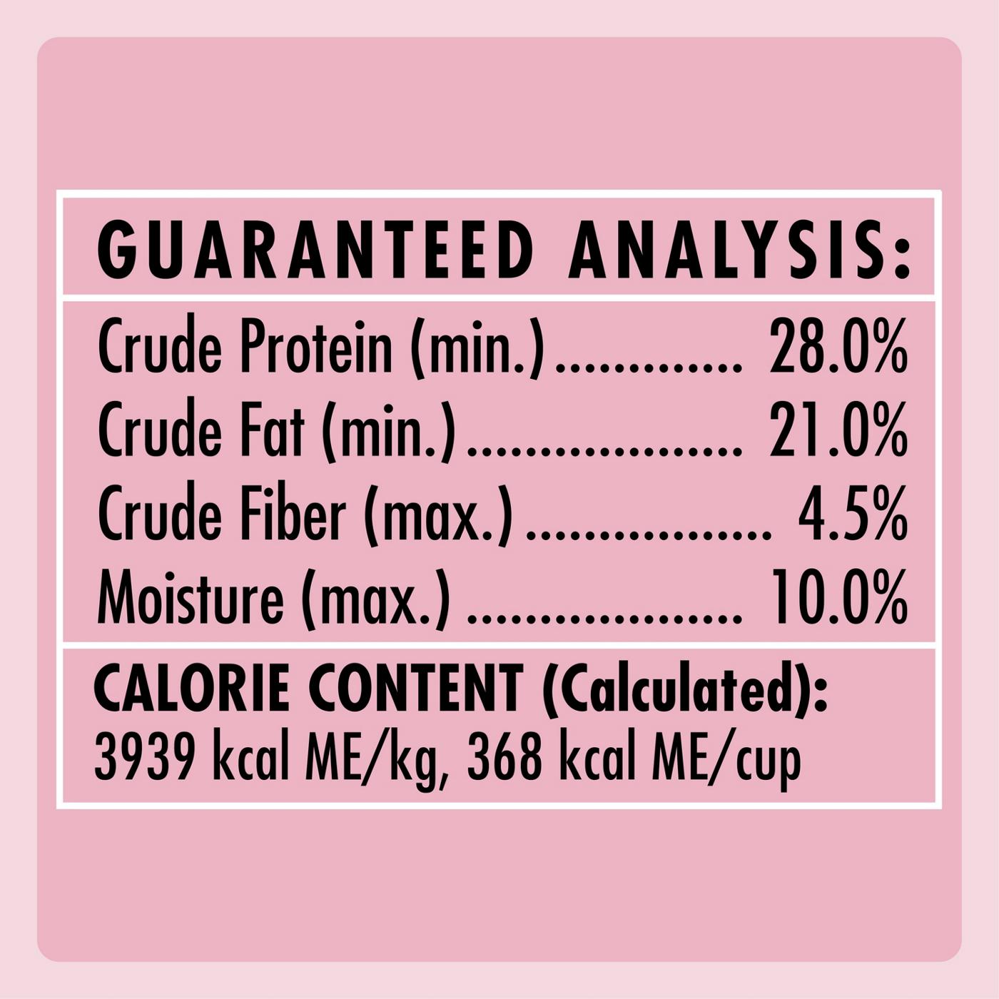 Nutrients: Crude Protein min 28.0 %; Crude Fat min 21.0 %; Crude Fiber max 4.5 %; Moisture max 10.0 %.