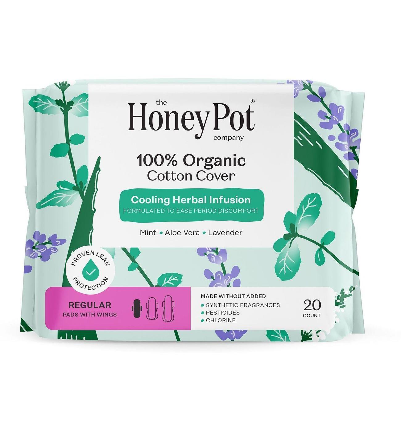 The Honey Pot 100% Organic Cotton Cooling Herbal Regular Pads with Wings