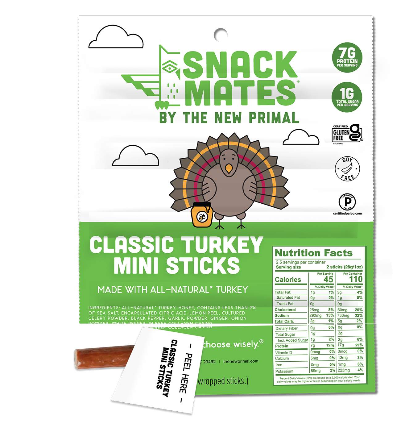 New Primal Snack Mates 7g Protein Mini Turkey Meat Sticks