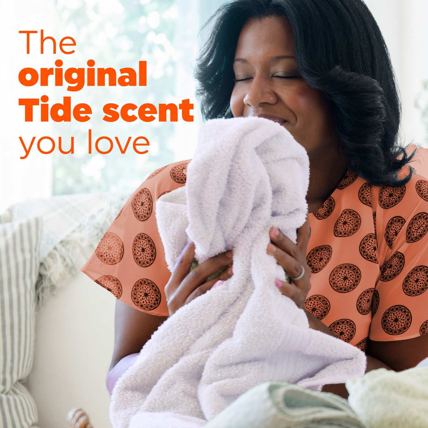 Experience the power of 6X Boosted Clean with Tide Liquid Laundry Detergent. Engineered to be 4X cleaner and 2X fresher formulated with 4 additional cleaning active ingredients and 2 additional freshness active ingredients versus Tide Simply, ensuring your clothes look newer for longer. While leading baking soda brands may leave you with "almost clean," Tide tackles 100% of common stains with confidence, making it your go-to for every load, every time.With 10X the grease-fighting power compared to leading bargain brands, Tide's concentrated formula means you're not just paying for water, but for a truly powerful clean. Suitable for all machine washable fabrics and compatible with every cycle and water temperature-even cold and quick washes-Tide delivers versatility and effectiveness.Infused with the beloved Tide Original scent, our detergent provides all-day freshness you can count on. Join countless satisfied consumers who have made Tide America's #1 laundry detergent, according to Nielsen data over the past 52 weeks making it the smart choice for a cleaner, fresher wardrobe. Don't settle-boost your clean with Tide! Includes 1 125 fl oz bottle of Tide Liquid Laundry Detergent in Original scent, enough for 100 loads.