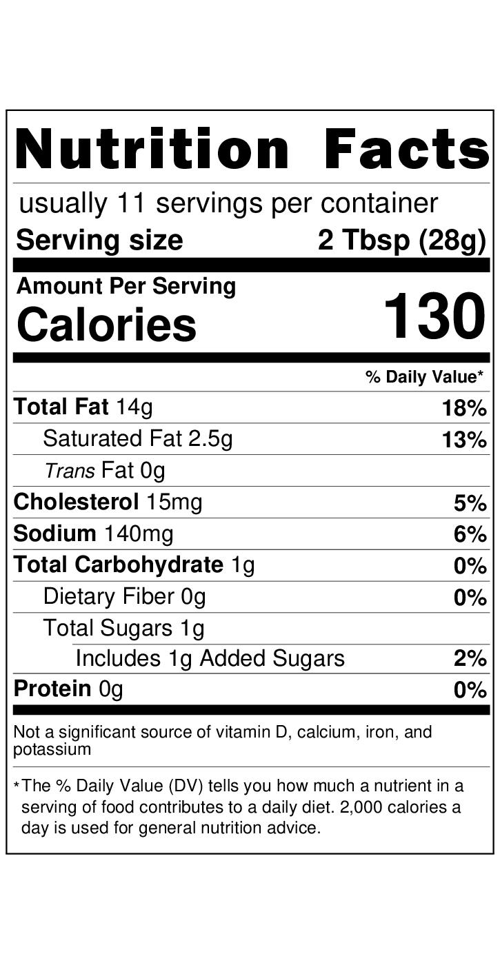 Serving Size2.00 tbsp- Amount Per ServingCalories130