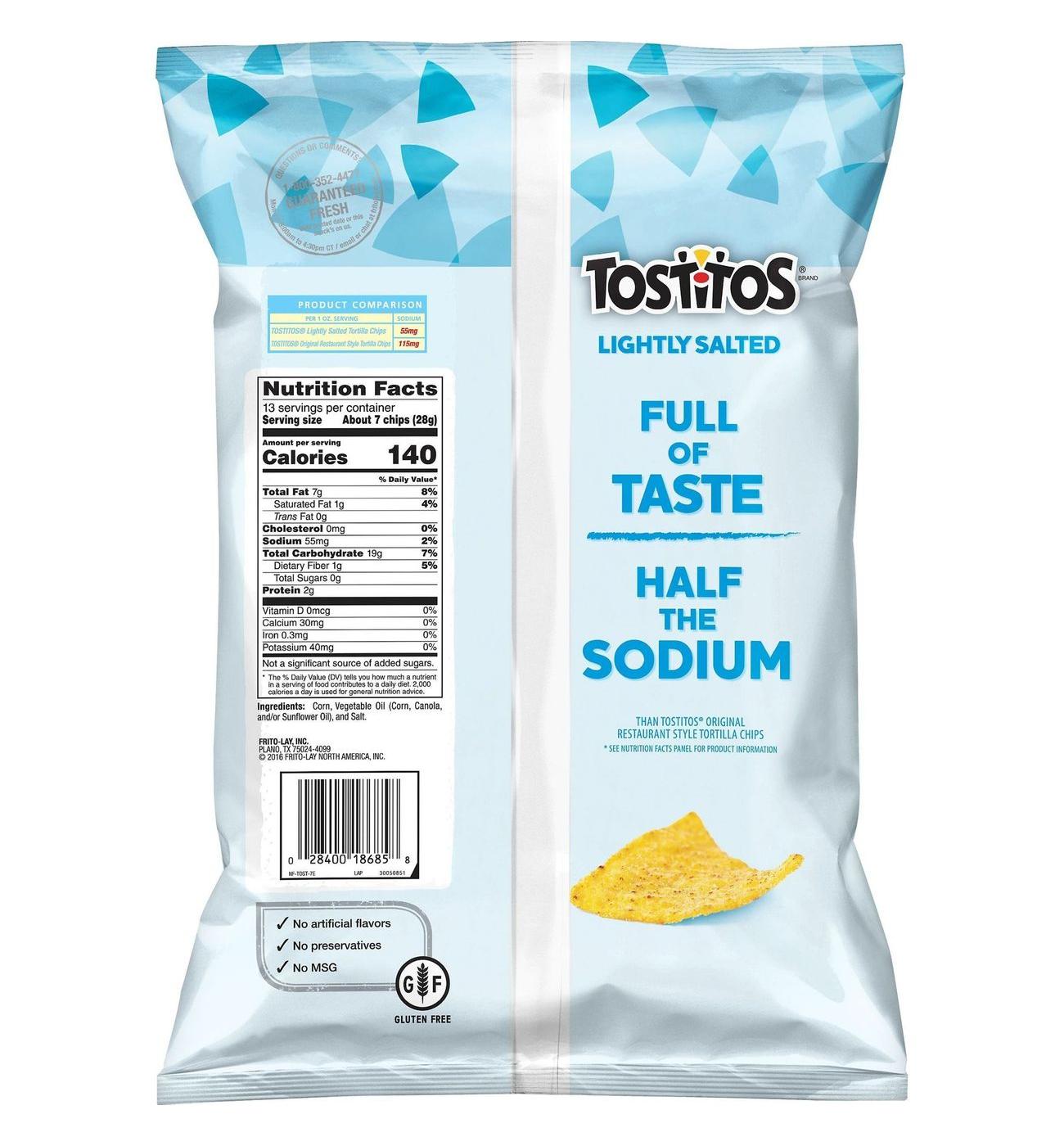 Full of taste. Half the sodium than Tostitos original restaurant style tortilla chips.