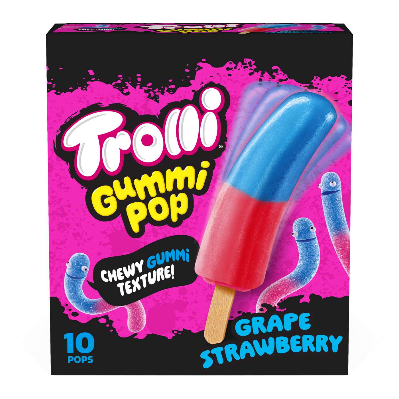 Are you ready for the coolest gummy candy experience? Trolli Gummi Pops are taking snacking to a whole new level. Part gummy and part frozen, these non-dairy frozen dessert treats are all kinds of awesome. Trolli Gummi Pops have an unbelievable soft, chewy, gummy candy texture with sour flavors combos of Grape and Strawberry candy. It’s bold, a little thrilling and 100% unforgettable, bringing all the Trolli gummy candy vibes to ice pops.