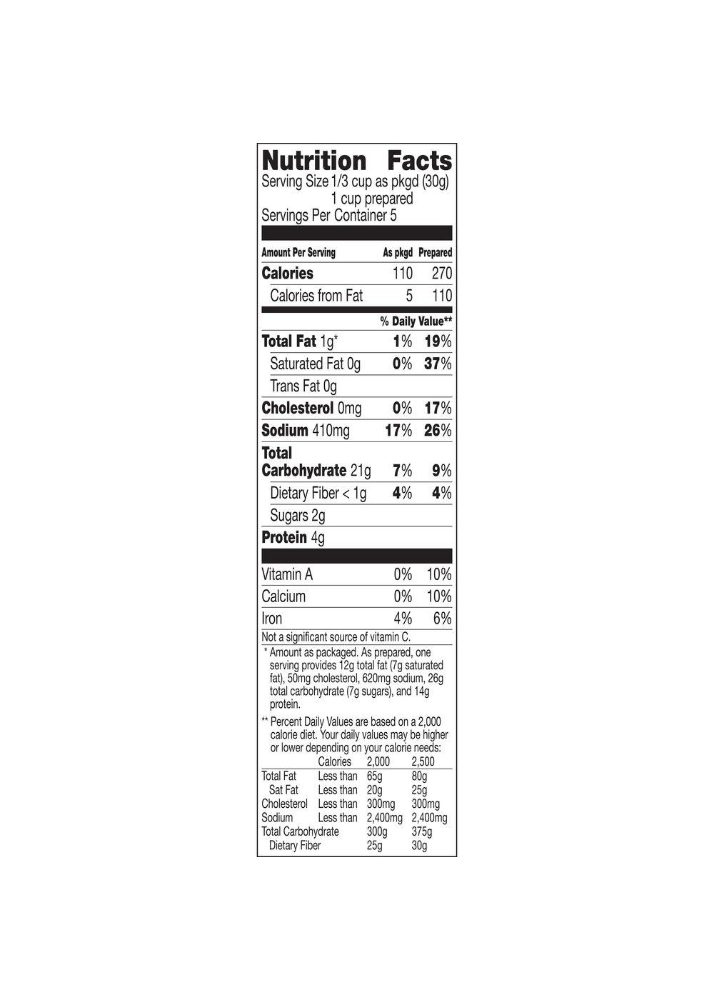 Serving Size0.33 cup as pkgd- Amount Per ServingCalories120