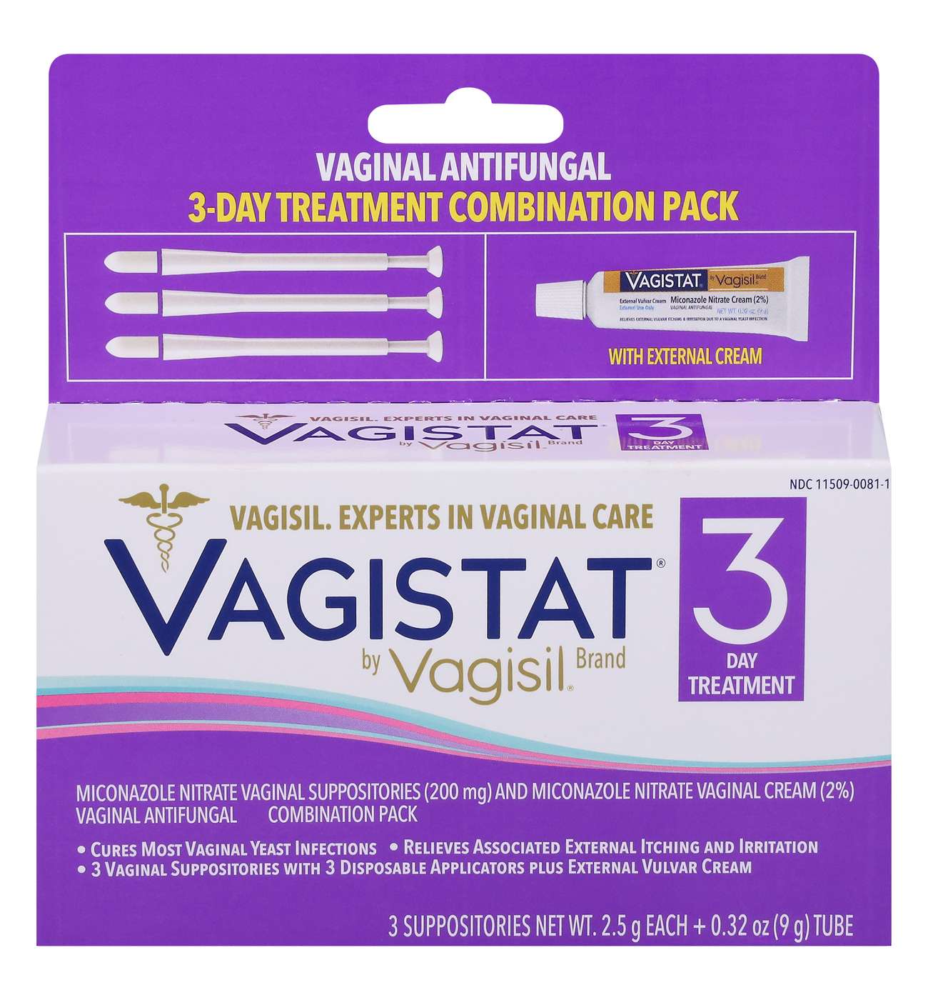 The Vagistat 3 Day Yeast Infection Treatment for Women is an effective over-the-counter yeast infection treatment for relieving external itching and irritations. Our topical yeast infection cream cures most vaginal yeast infections. It comes with a 3-day supply of treatment, including 3 disposable suppositories and applicators. When it comes to feminine care, Vagistat is your go-to. If you're suffering from feminine dryness and itching and a feminine cleansing wash doesn't resolve the issue, you may need Vagistat.