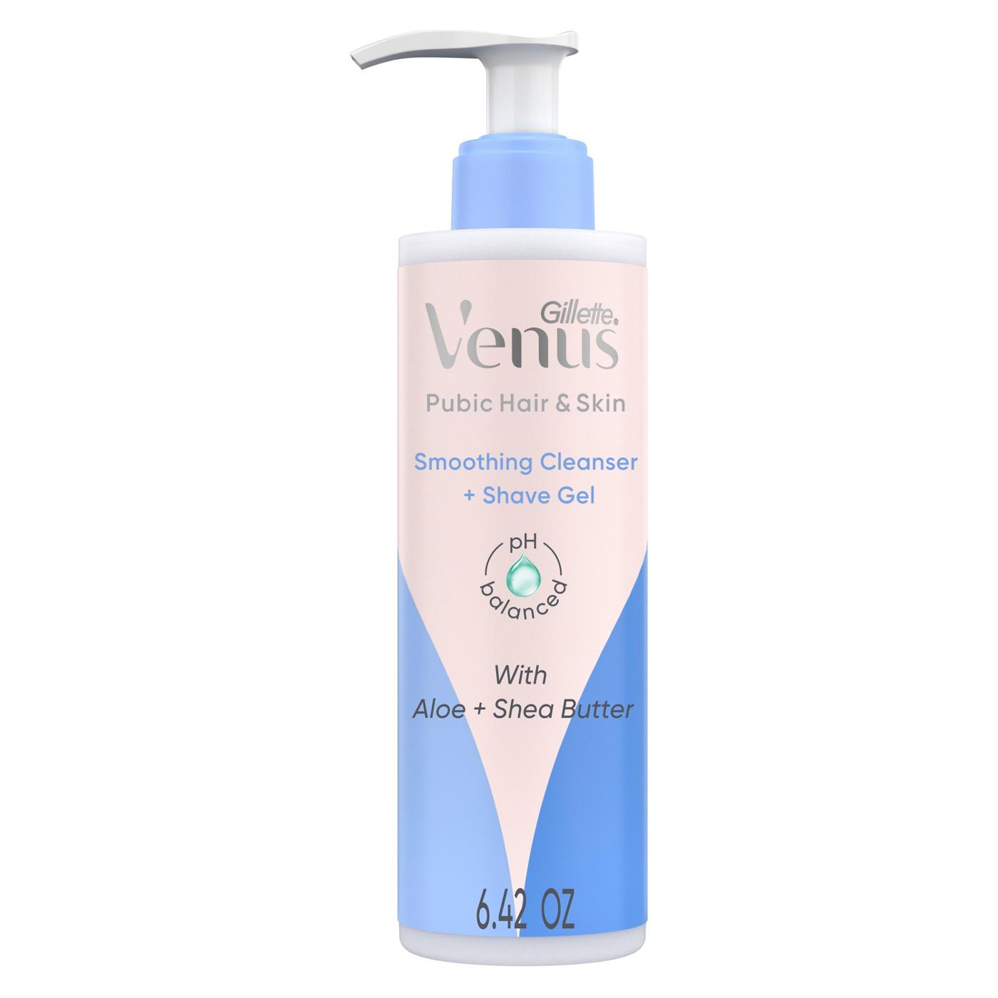Venus Pubic Hair & Skin Smoothing Cleanser + Shave Gel can be used during the shave to provide a protective layer of glide and help prevent shaving irritation, or as a gentle skin cleanser. Dermatologist and gynecologist tested, this shaving gel for women is pH balanced for pubic skin and made without parabens, dyes, fragrance and silicones for daily use on sensitive skin. The smooth, silky texture provides a close shave, and the translucent bikini shave gel lets you see what you're doing while shaving delicate areas. This Venus 2-in-1 cleanser and shave gel is easy to dispense and rinse away. Once applied, the gel formula stays in place to help protect your skin while you shave. Specifically designed for your pubic area, this womens shaving gel softens the skin to help prevent ingrown hairs. For great results, use the entire Venus Pubic Hair & Skin lineup. Gillette Venus products are made with your body and hair in mind. Use the entire Venus for Pubic Hair and Skin lineup to help prepare and protect pubic skin from shave irritation and maintain your pubic hair and skin