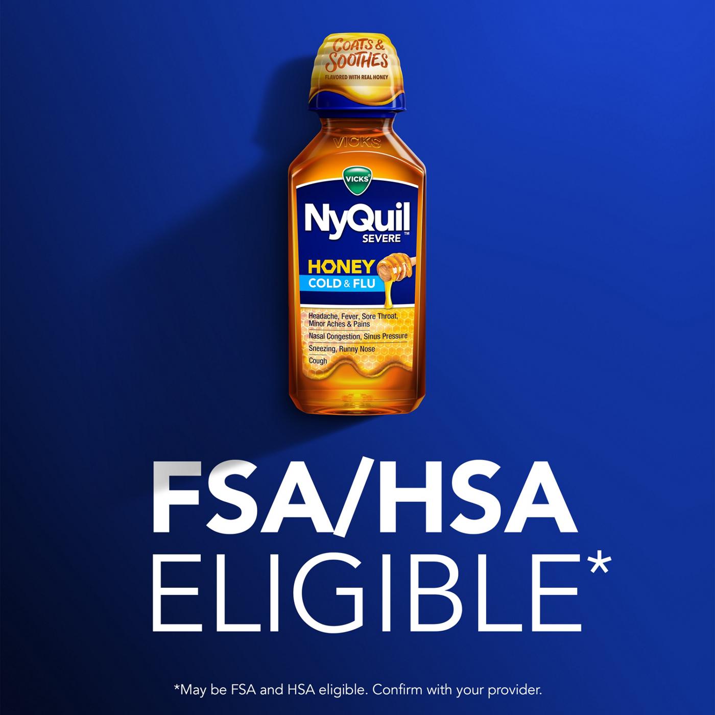 Vicks NyQuil SEVERE Cold & Flu Liquid Over-the-Counter Medicine, Powerful Nighttime Relief, Honey Flavor