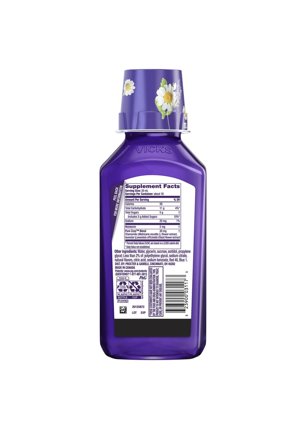 ZzzQuil PURE Zzzs Liquid Melatonin works naturally with your body to support your body's natural sleep cycle.* If you've been struggling with occasional sleeplessness, whether it's caused by schedule changes, stress, or restless thoughts, consider trying a melatonin supplement. ZzzQuil PURE Zzzs Liquid Melatonin is a great choice when you're dealing with occasional sleeplessness, because it is drug-free and allows you to wake without next day grogginess. This delicious melatonin liquid also contains a complementary blend of chamomile and lavender. ZzzQuil PURE Zzzs Liquid Melatonin was developed by the trusted experts at Vicks, from the World's #1 Sleep Aid Brand. Better days start with ZzzQuil Nights and PURE Zzzs Liquid Melatonin. ^vs. placebo.*These statements have not been evaluated by the Food and Drug Administration. This product is not intended to diagnose, treat, cure, or prevent any disease. Source Euromonitor International Limited; Consumer Health 2024 Edition; Sleep Aids, all channels, retail selling price, Global Brand Name ZzzQuil 2023 data