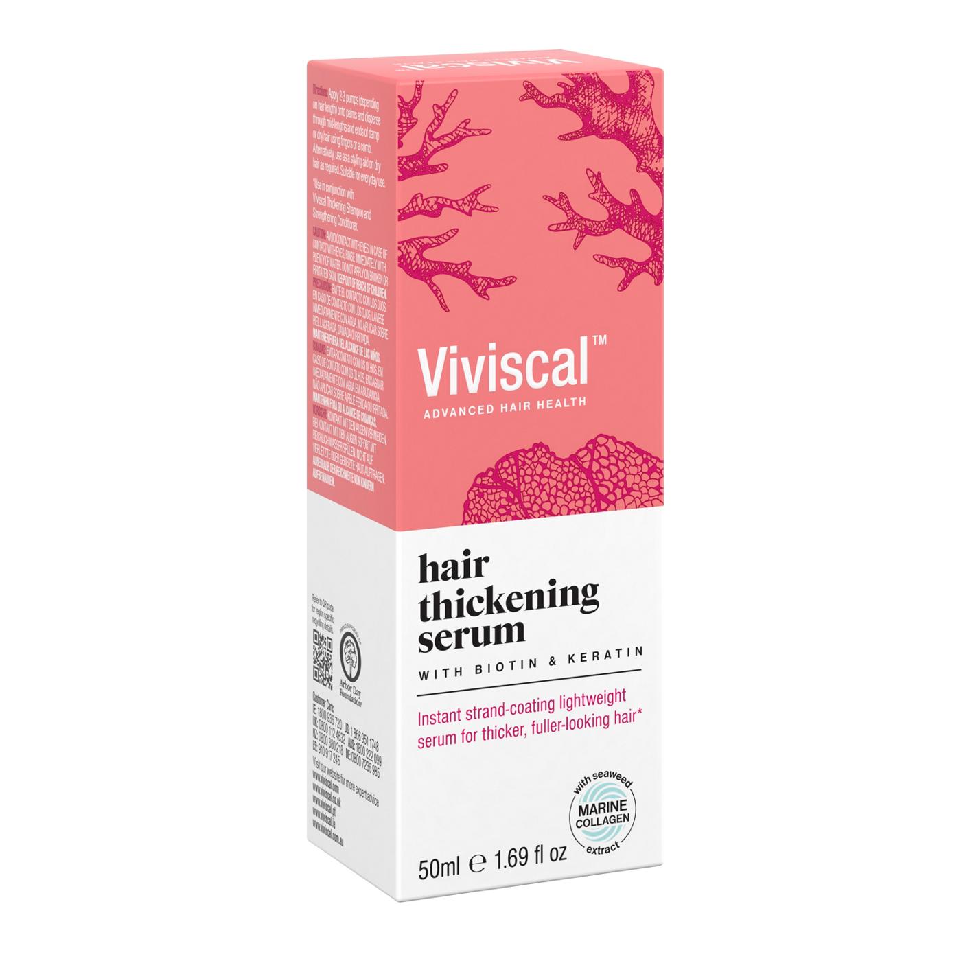 At Viviscal, we understand the science of healthy hair growth from the inside out. Formulated with hair building blocks Biotin and Keratin, and fortified with marine Collagen and Seaweed extract, Viviscal Hair Thickening Serum is a lightweight leave-in treatment that coats each hair strand creating multi-dimensional density without frizz leading to thicker, fuller-looking hair*. For best results, nourish your hair from within with Viviscal Hair Supplements.