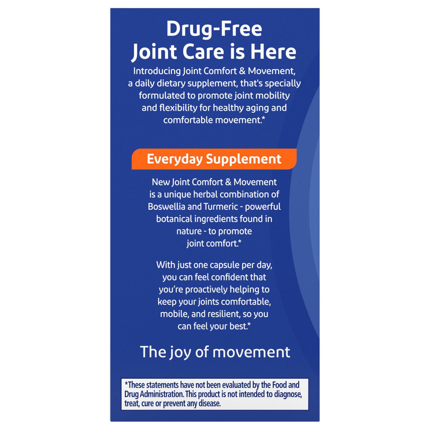 Joint Comfort + Movement from Voltaren Dietary Supplement is made with the botancial ingredients Turmeric and Boswellia. Take one capsule a day to benefit from this dietary supplement. Continue to experience the joy of movement.• Contents: One 30 count bottle of Joint Comfort & Movement Dietary Supplement from Voltaren capsules• Joint Comfort and Movement: Botanical ingredients formula helps promote joint mobility, resilience and flexibility (1)• Botanicals: Turmeric and Boswellia help promote and maintain joint comfort and mobility (1)• Boswellia: Helps offer joint support, keeping you comfortable so you can move freely (1)• Turmeric: Has antioxidant properties that protect against cell damage (1)• Exercise: Helps promote a healthy inflammatory response that occurs with or after exercise (1)