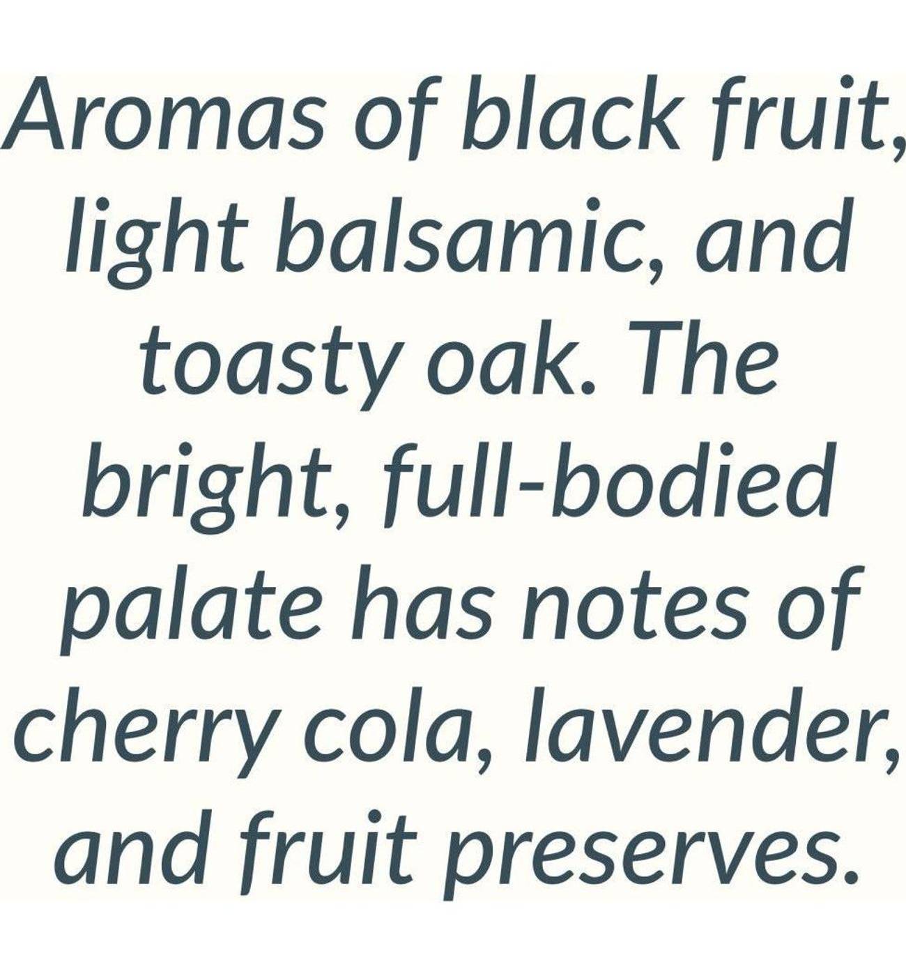• Tasting Notes: Intense cherry red color. Remarkable aromatic complexity with notes of black fruit, light balsamic, and toasted touches reminiscent of barbeque. On the palate, it displays cherry cola, lavender, and fruit preserves, with full-bodied, rich complexity.