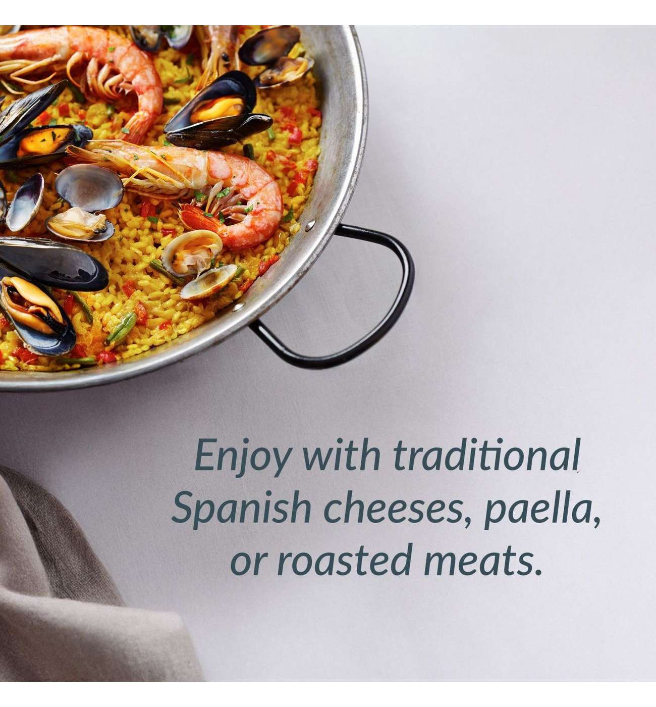 • Pairings: Pairs well with beef, pork, pasta, cheese, and rice-based dishes like paella.