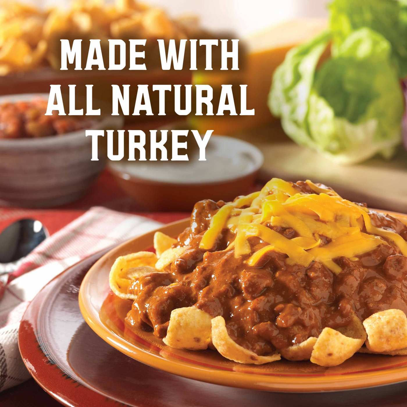 • Made with ground turkey and vine-ripened tomatoes simmered in a special blend of spices
