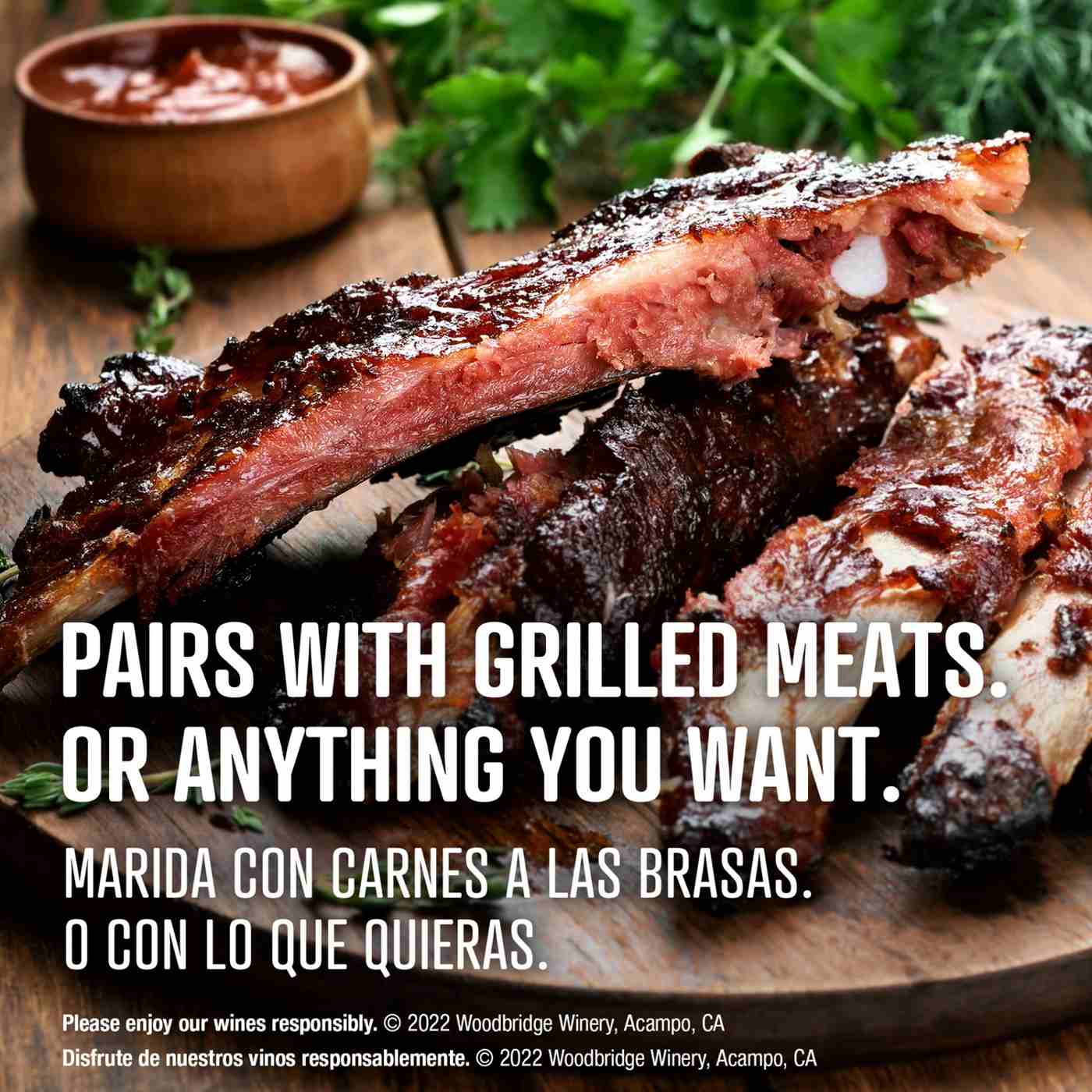 Woodbridge Cabernet Sauvignon Red Wine presents aromas and flavors of blackberry, dark cherry, toasted marshmallow, and spice. This medium-bodied California red wine pairs well with grilled meats.