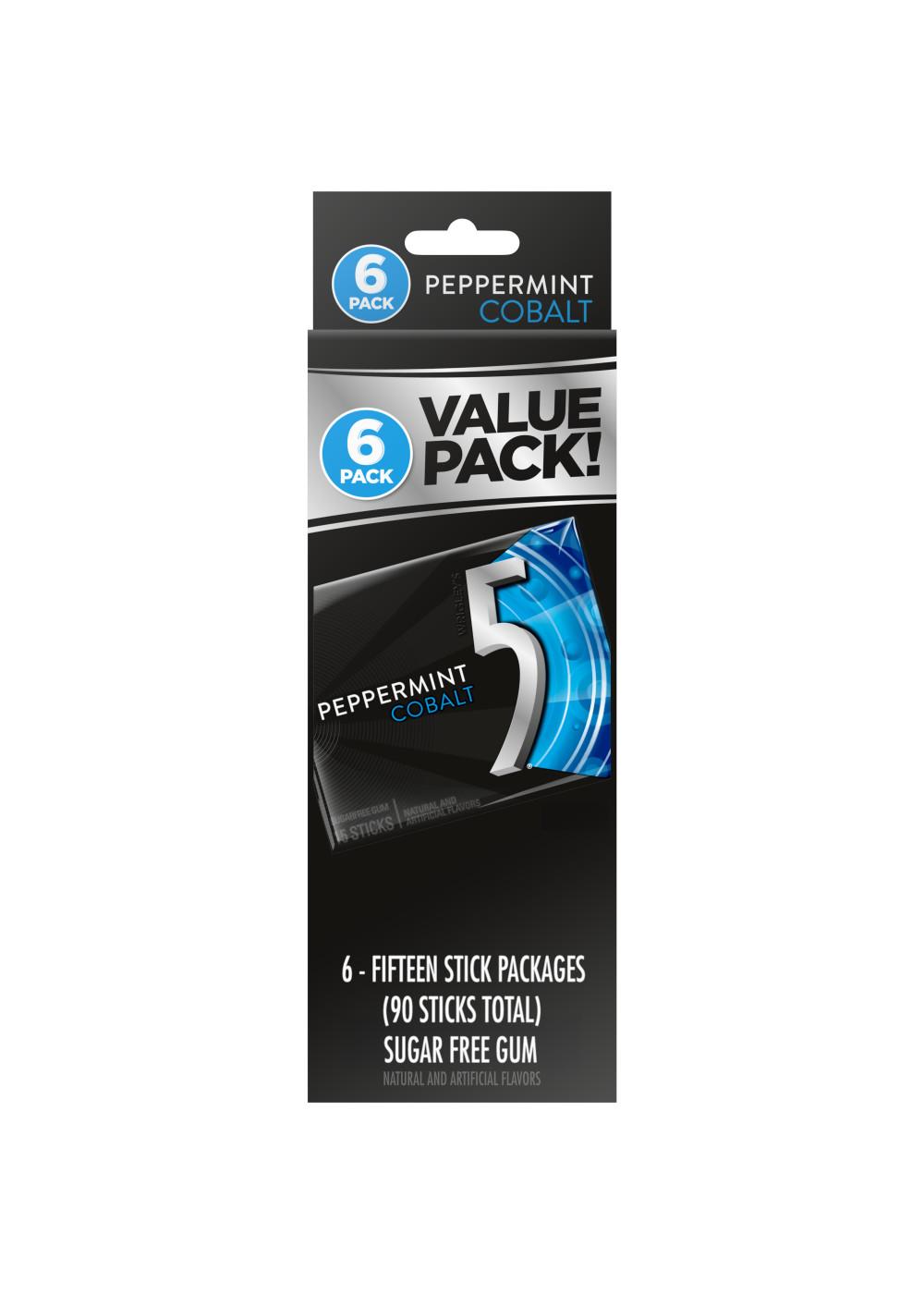 • Chew your way to an intense minty flavor experience with 5 Gum Peppermint Cobalt Sugarfree Gum