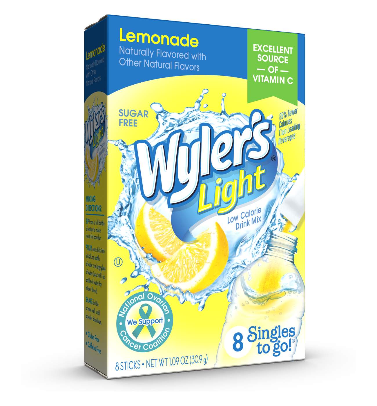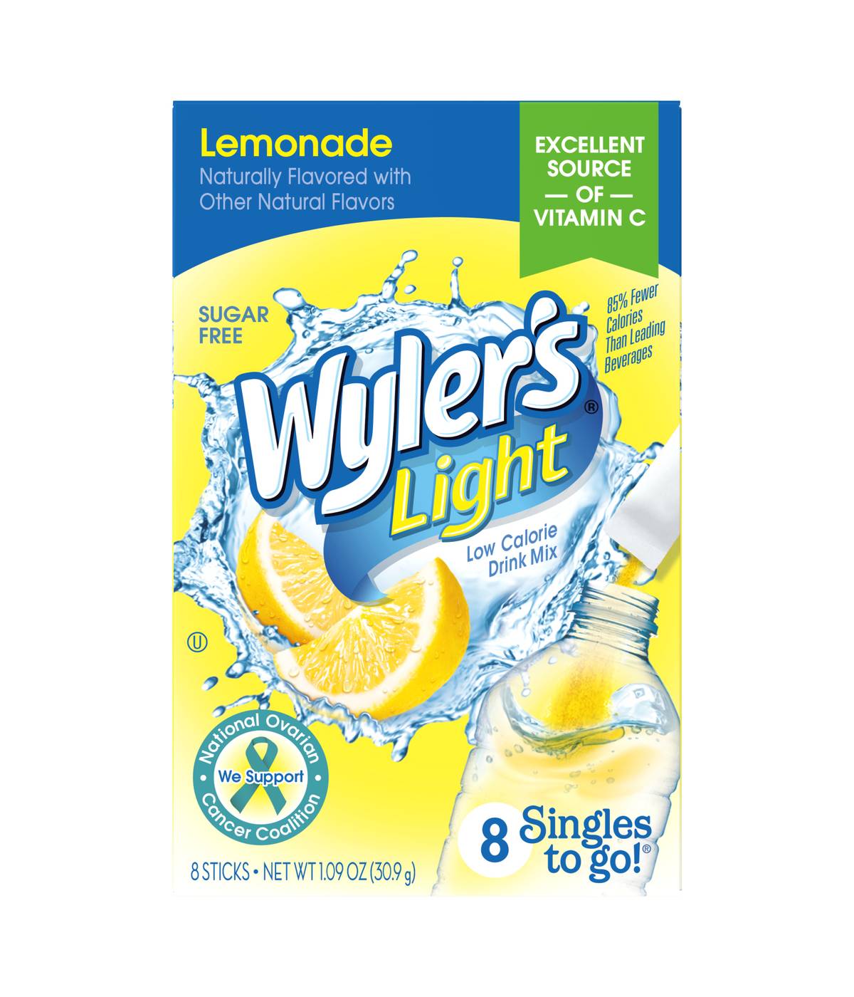 If getting your family to drink enough water is a chore, Wyler’s Light drink mix can make hydration taste great! With just 5 calories per packet and no sugar, Wyler’s Light drink mix is a better choice than most soft drinks and come in a wide variety of flavors. Wyler’s Light singles to go are also an excellent source of vitamin C. Convenient and easy, Wyler’s Light singles are perfect for adding to the average water bottle. Simply sip from the bottle to make room for the powder, pour in the flavor of your choice and shake bottle to mix – or stir well into a glass of water. For a milder flavor, mix with a 20 fl. oz bottle of water rather than a standard 16.9 oz bottle. Wyler’s Light powder packets to go come in an 8-count box, and the case contains 12 boxes, giving you 96 delicious servings – perfect for taking to the office, gym, backyard gatherings or anywhere in between.