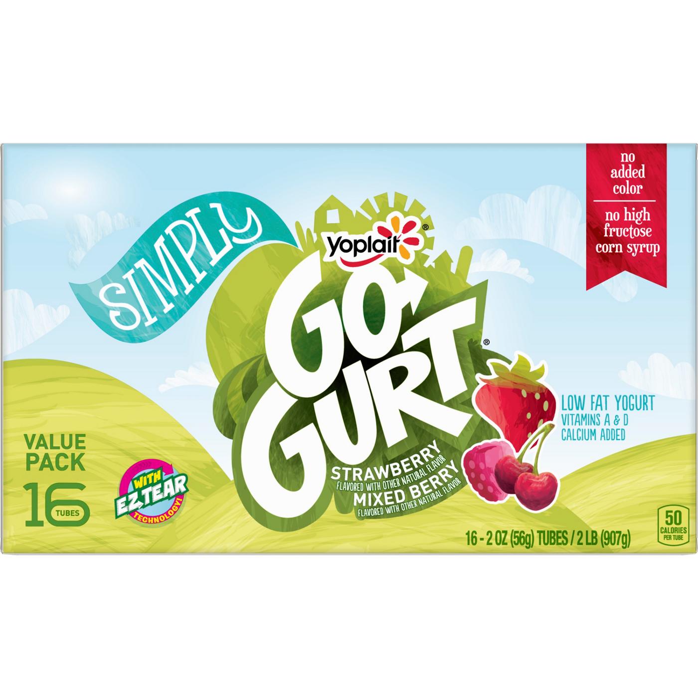 CONTAINS: One 32 oz Variety Pack of Simply Yoplait Go-GURT Strawberry Flavored and Mixed Berry Flavored Low Fat Yogurt; Sixteen 2 oz yogurt tubes
