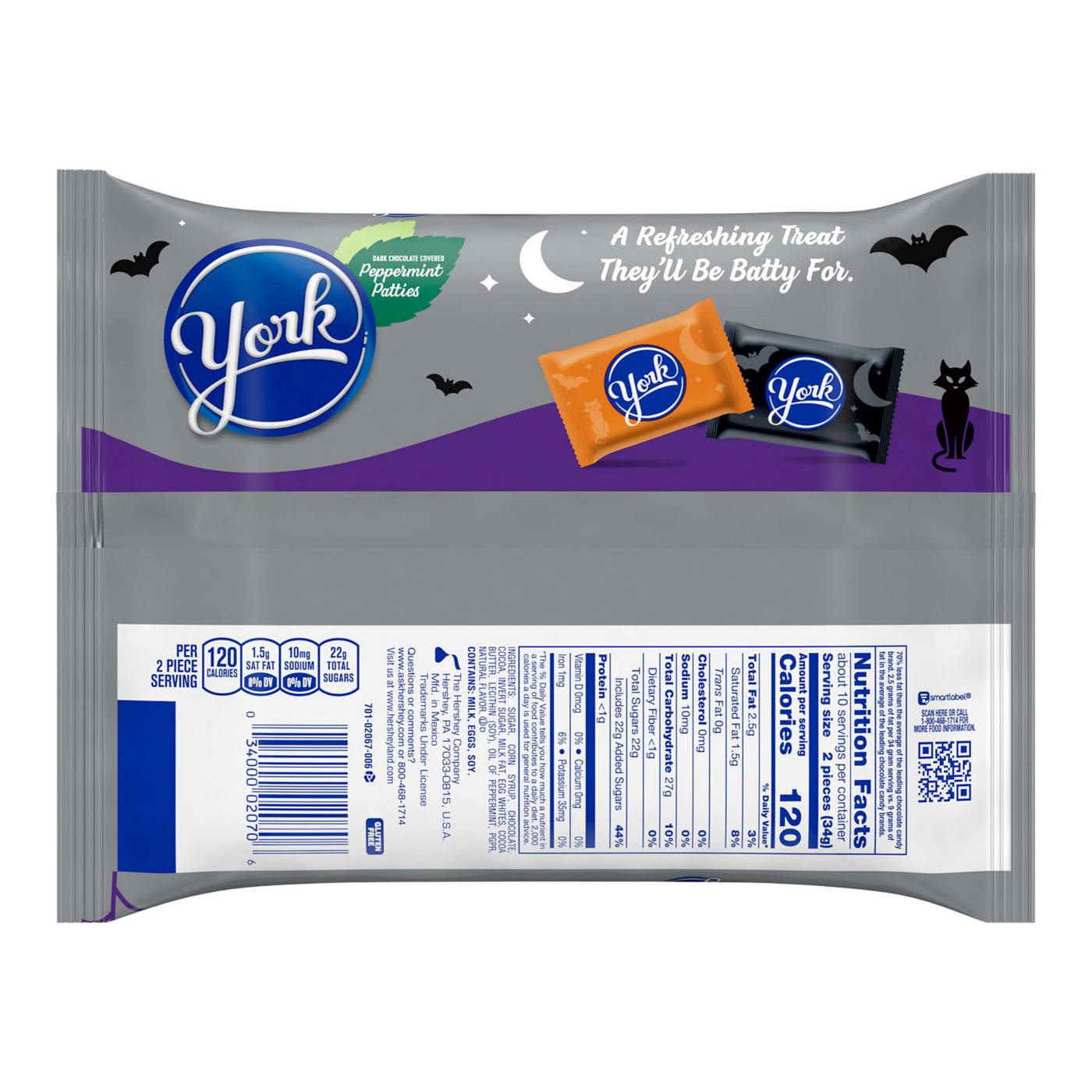 Make fall festivities and Halloween costume parties a few bites sweeter with York dark chocolate covered peppermint patties candies. These peppermint treats covered in dark chocolate candy are perfect for filling fall candy jars, Halloween candy bowls and every moment in between. Pack one in your lunch box, keep a bag in your pantry, hide them inside school backpacks or fill gift bags to share the refreshing goodness of York candies. This kosher and gluten free candy is individually wrapped in festive packaging so you can enjoy them easily on the go during everything from pumpkin picking to Halloween movie nights.