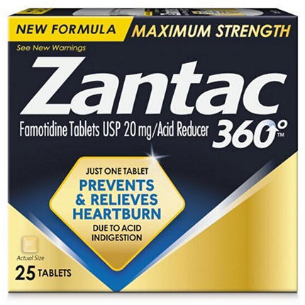 • Contains one (1) 25-count bottle of Zantac 360 Maximum Strength 20 mg tablets