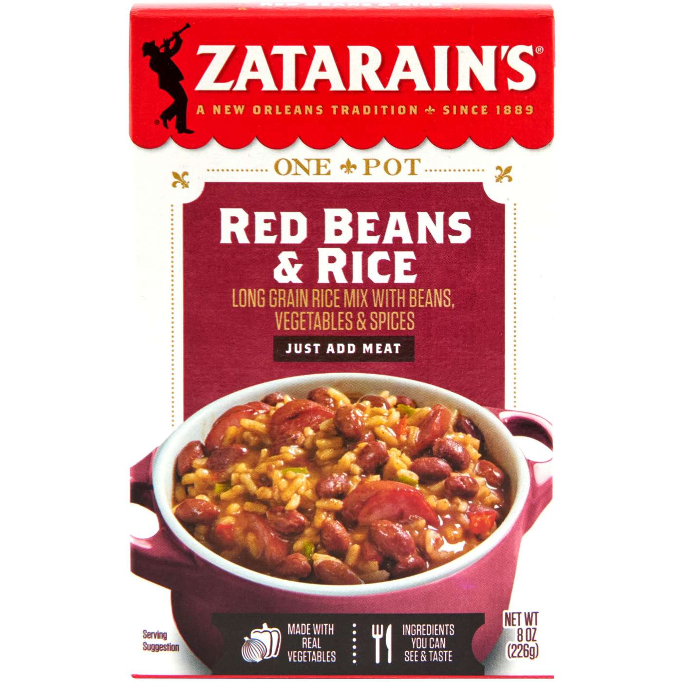 A quintessential New Orleans dish, traditionally prepared on Mondays when a long stovetop simmer gave home cooks time to do laundry. Today, red bean lovers rely on Zatarain's for classic flavor in a fraction of the time. Enjoy Zatarain's Red Beans & Rice as a main course or side dish. Supplement with sausage, ham or pork chops, or hold the meat and have a tasty vegetarian meal. However you prepare it, Zatarain's Red Beans & Rice is hearty but not heavy, packed full of flavor and an instant crowd-pleaser.- Features long grain white rice and tender red beans- Contains blend of seasonings, including hickory smoke flavor- Prepared and on the table in less than 30 minutes- Serve as a side dish or complete meal with the addition of meat- Can be made on the stove top or in the microwave