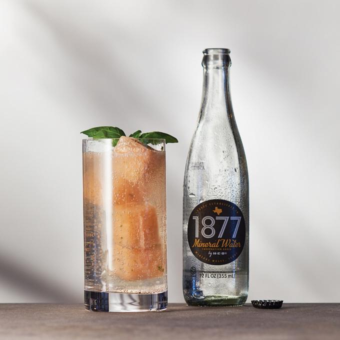 - To serve, add 2 frozen melon cubes to each tall glass and pour in sparking water. Garnish with more fresh basil and lemon slices if desired.