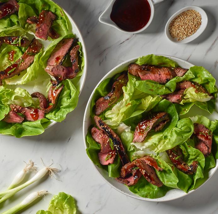 - Slice the beef and place in the lettuce cups and top with the toasted sesame seeds and serve.
