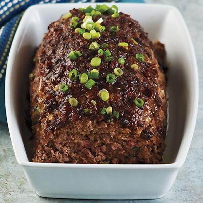 - Thoroughly combine pecans, green onions, Gouda, bread crumbs, beef, seasoning and bacon jam and form into a loaf; place in a baking dish.