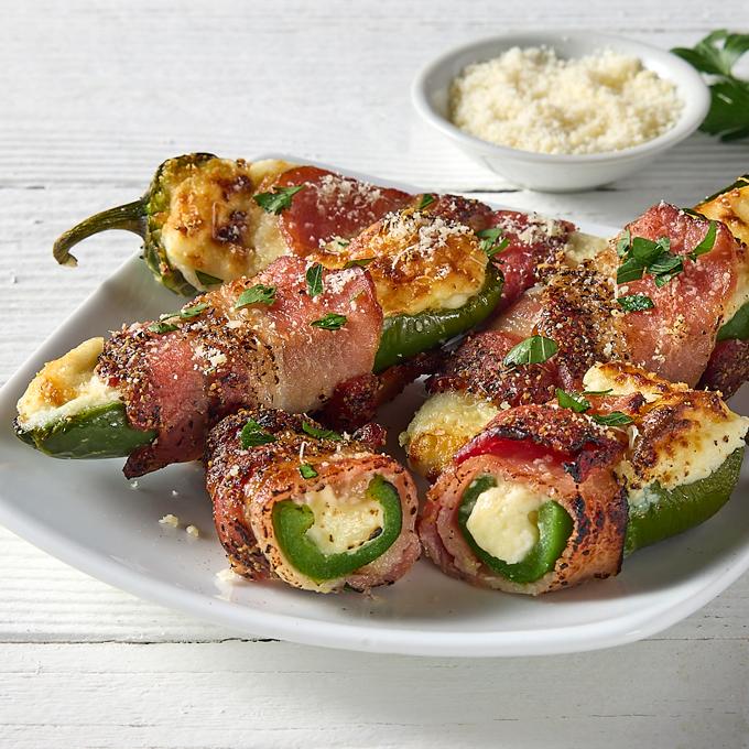 - Arrange wrapped poppers on prepared sheet pan and bake 20 to 30 minutes or until bacon is fully cooked and crispy.