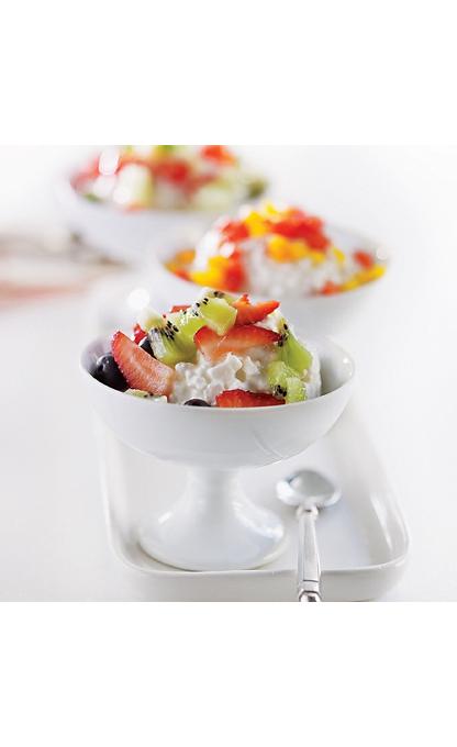 - Place 1/4 cup cottage cheese in 4 small bowls.