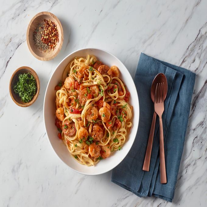 - PREP: Seasoning shrimp with Creole seasoning. Slice andouille sausage into coins.