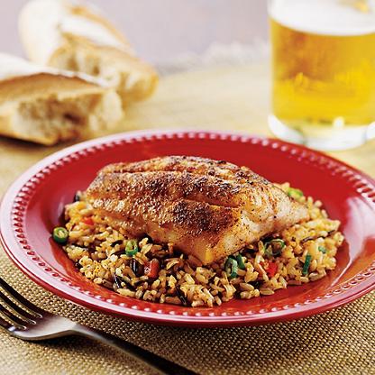 - Sear fish 2-3 minutes per side, or until center turns from clear to opaque (white) and fish is just beginning to flake. Serve over rice if desired.