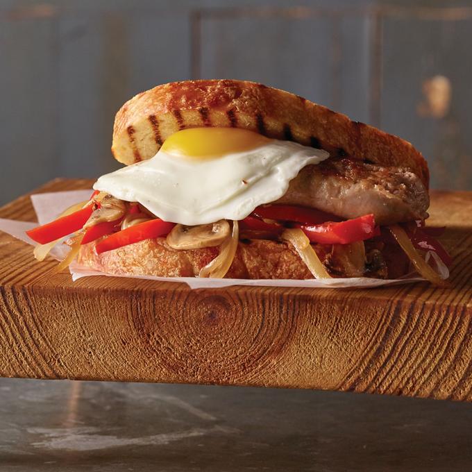 - Serve sausage on toasted bread with pepper-mushroom mixture and a fried egg.