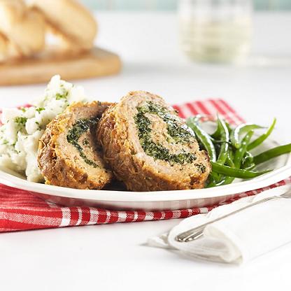 - Spread filling over turkey, leaving a 3/4-inch border around edges.