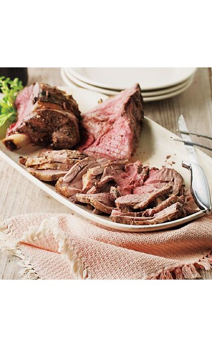 - Let roast stand 15 minutes before carving. Reserve pan juices. Split roast in half next to bone. Remove bone and carve each half into thin slices, cutting across grain. Serve with pan juices if desired. Salt & pepper to taste.
