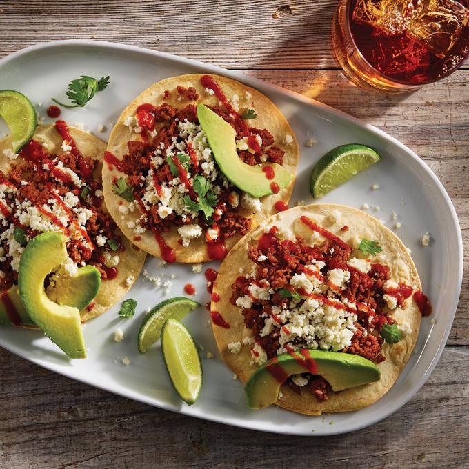 Meatless Beefy Tostadas with Avocado
