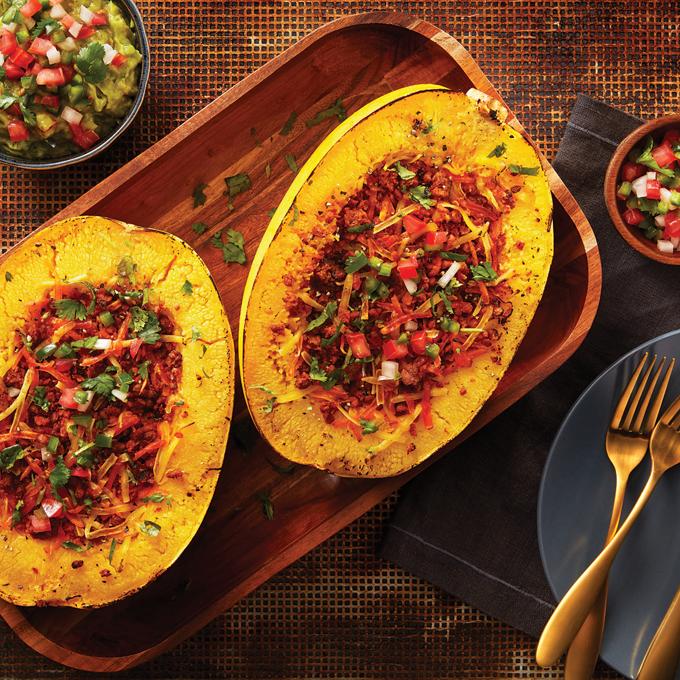 - Cut squash in half and scoop out seeds. Lay cut-side-up and fill with crumbled fava bean meat. Top with cheese and bake for an additional 10 minutes.