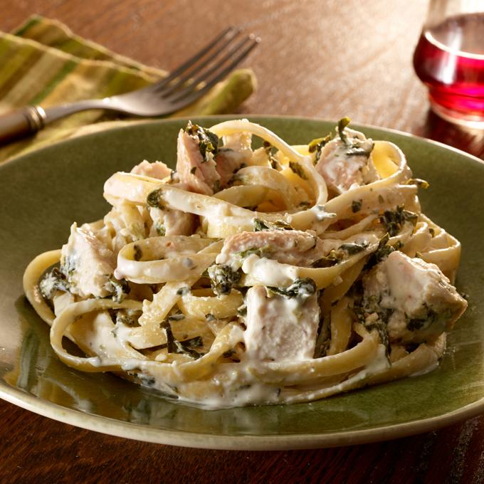 - Cook pasta according to package directions. Cook spinach according to package directions and drain. Drain pasta thoroughly and combine with spinach.