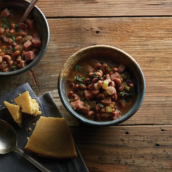 - Add oil to pot. Stir in celery, onion, and green bell pepper. Cook for 2-3 minutes until onions are translucent. Turn down heat to medium and add garlic. Cook for 1 minute more and add in black eyed peas, reserved ham, and creole seasoning. Stir to combine and cook for 1-2 minutes.
