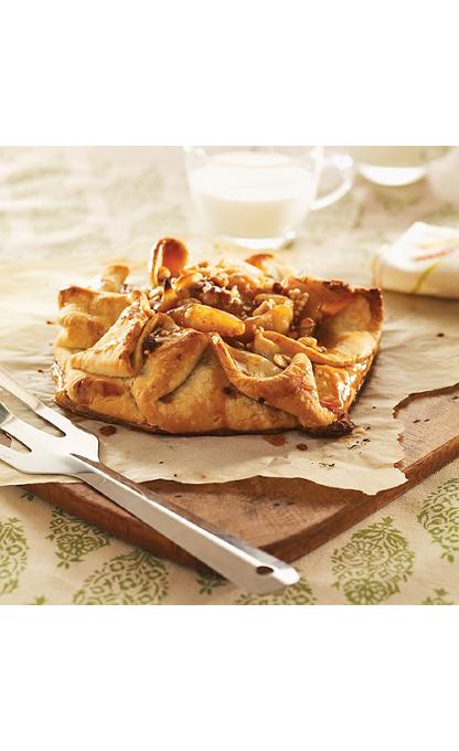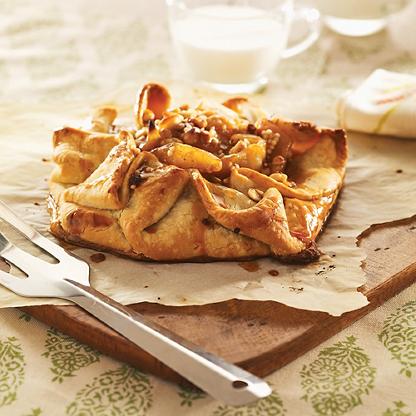 - Spread apple filling in center 10 inches of dough and sprinkle with walnuts. Fold over and pleat edges of dough with fingers, leaving a 5-inch opening in center.
